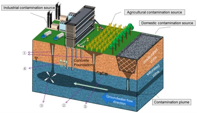 Transport processes of contaminants: 1. Infiltration 2. Advection 3. mechanical dispersion and diffusion 4. volatilization and 5. biodegradation - Sydney University, Department of Built Environment
